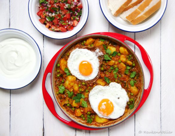 - Serveer de aardappelcurry met de eieren, yoghurt, tomatensalade en wat brood.