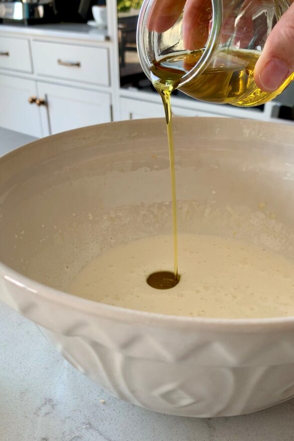 - Voeg dan de olijfolie toe en mix het heel kort op lage snelheid door.